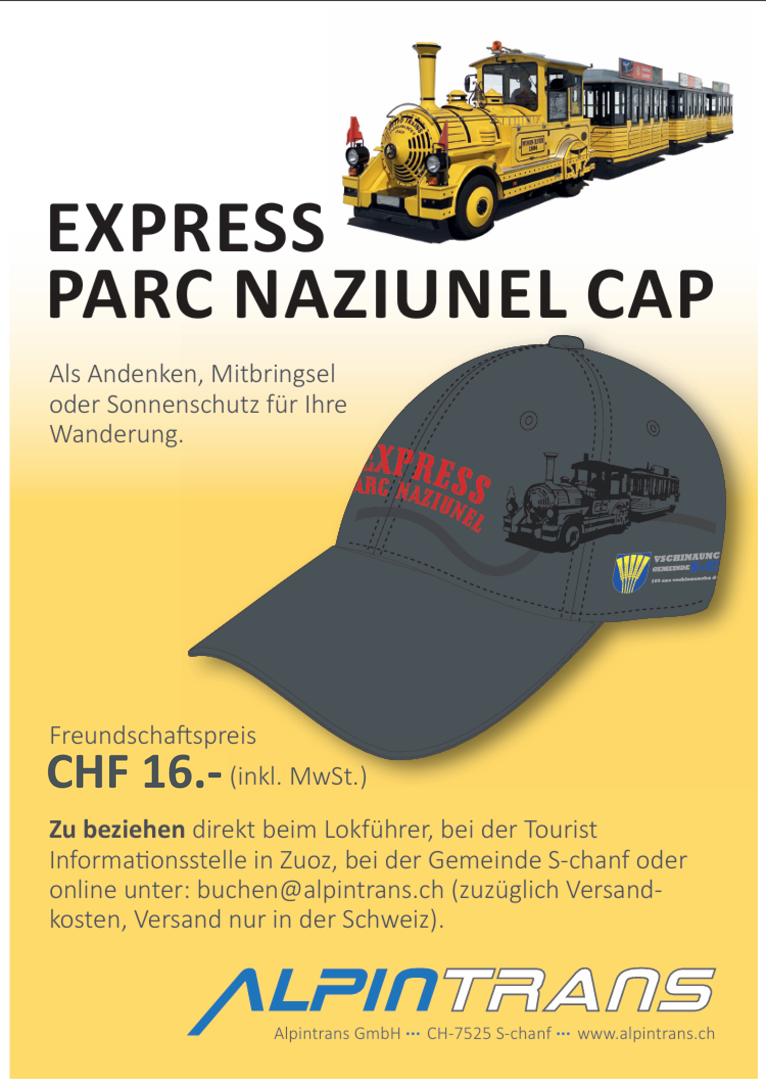 Ab Juni bis Oktober fährt das Zügli täglich von Zuoz Bahnhof nach S-chanf Bahnhof und weiter bis Varusch, dem Eingang zum bekanntesten Tal des Schweizerischen Nationalparks.